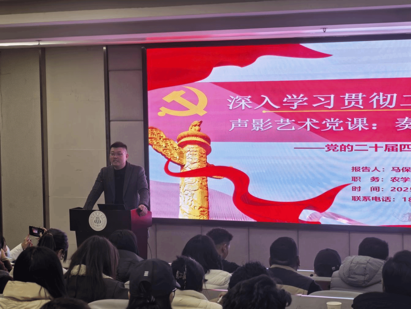 农学院党委办公室主任、团委书记马保欣为学员们讲授了一堂别开生面的“声影艺术党课”。课程融合音乐、视频、互动问答与电影片段解析等形式,以“奏响奋进强音与使命担当”为主线,从重大成就、重大意义、形势判断、核心要义与贯彻落实五大维度,对全会精神进行了生动阐释。通过数据对比、案例分析与艺术化表达,系统解读了“十四五”发展成就、“十五五”谋划部署与中国式现代化行动纲领,引导学员把握时代方位,将学习成果转化为实干担当。整场党课以创新形式搭建起理论联系实践的桥梁。